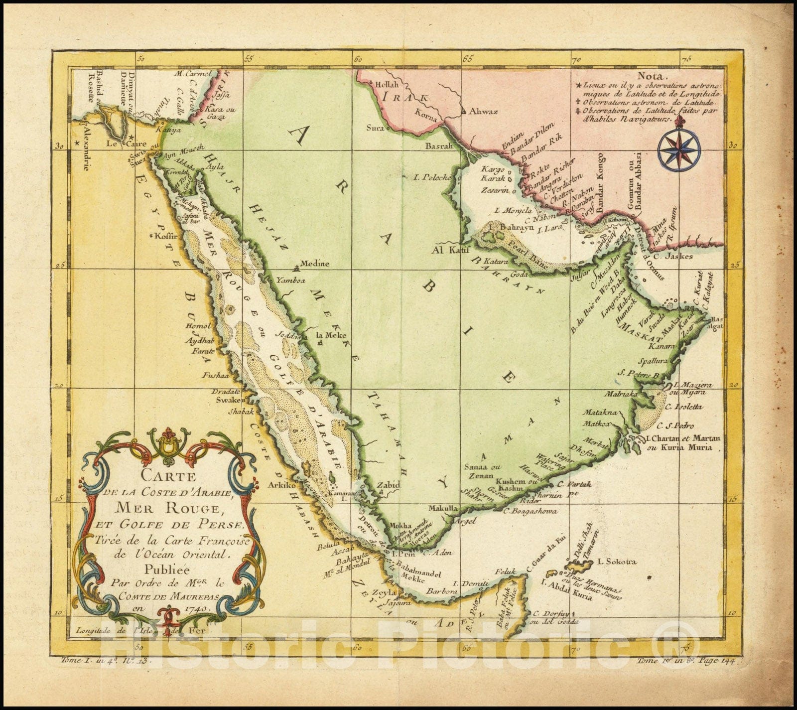 Carte de la Coste D'Arabie, Mer Rouge et Golfe de Perse, 1740, 1757