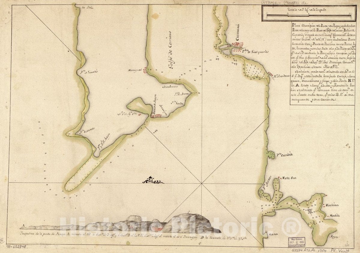 Historic 1754 Map - Plano o descripción de la Punta de Araya y su fondeadero, Parte de la Costa del E. Parte del Golfo de Cariaco