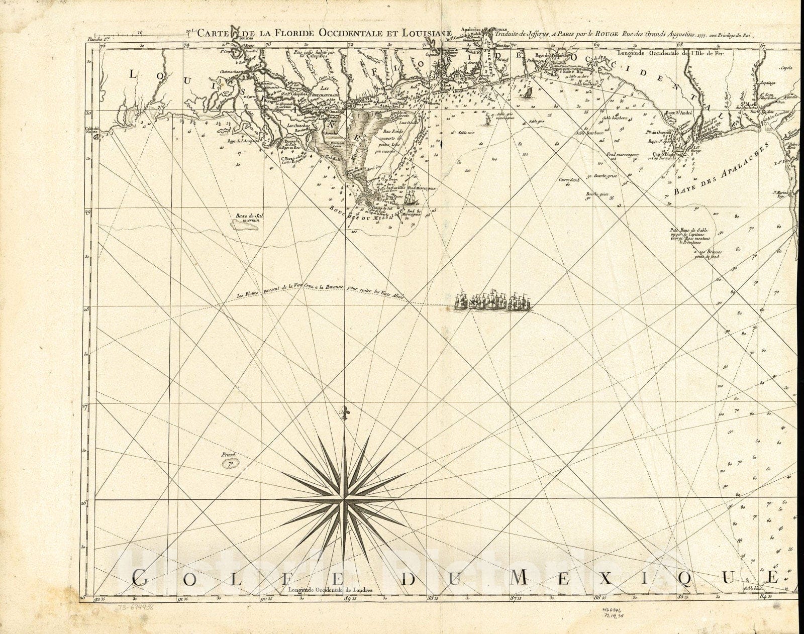 Historic 1777 Map - Carte de la Floride occidentale et Louisiane. La peninsule et golfe de la Floride ou Canal de Bahama avec les Isles de Bahama.
