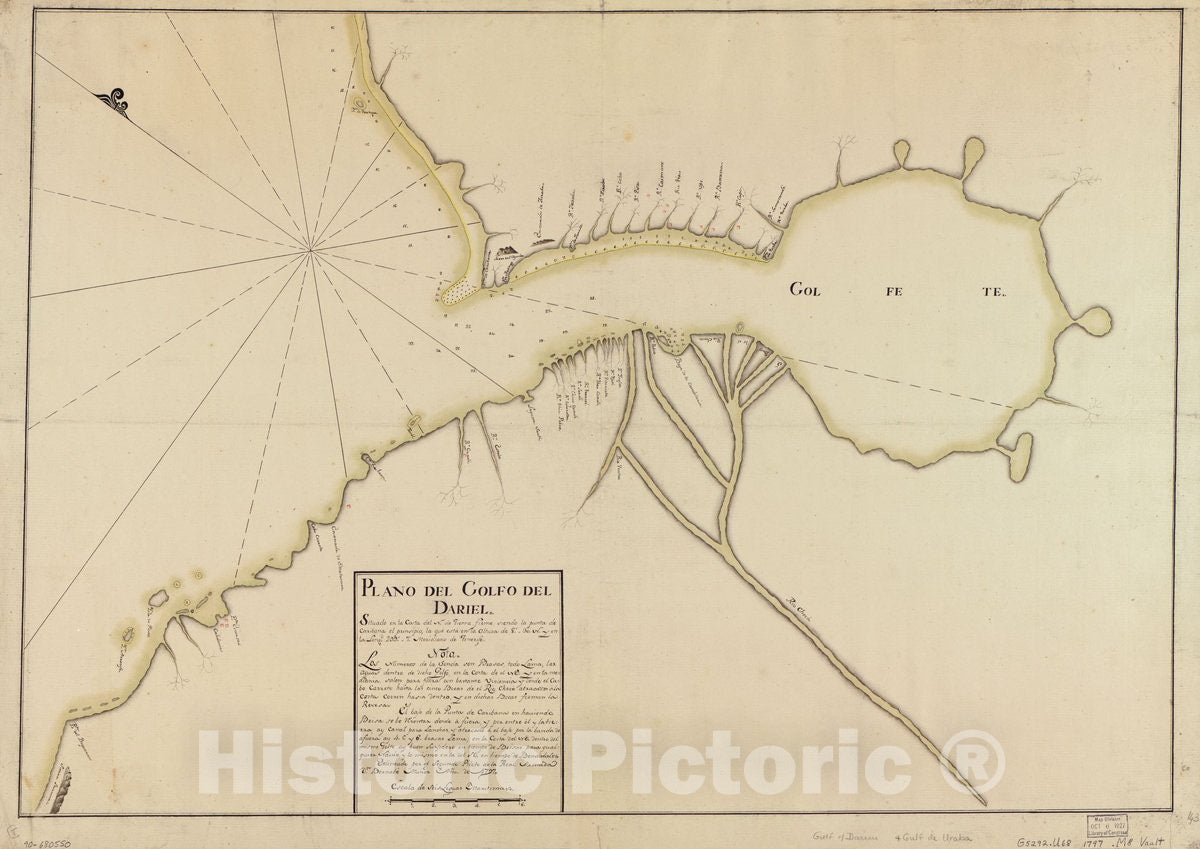 Historic 1797 Map - Plano del Golfo del Dariel situado en la Costa del N. de Tierra Firme siendo la Punta de Caribana, el prinsipio, la que esta en la altura DE 8 30 N. y en la longd