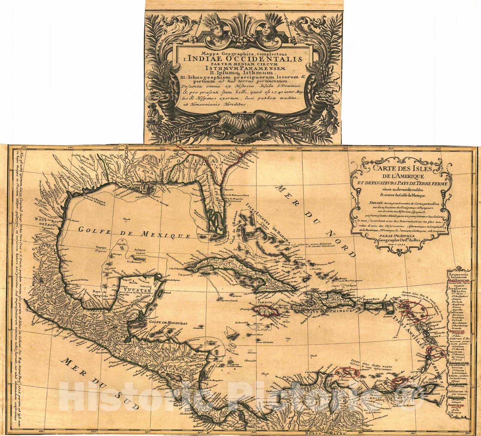 • .Historic Map : 1731 Carte des Isles de L'Amerique et Deplusieurs Pays de Terre Ferme situés au devant de ces Isles & autour du Golfe de Mexique : Vintage Wall Art