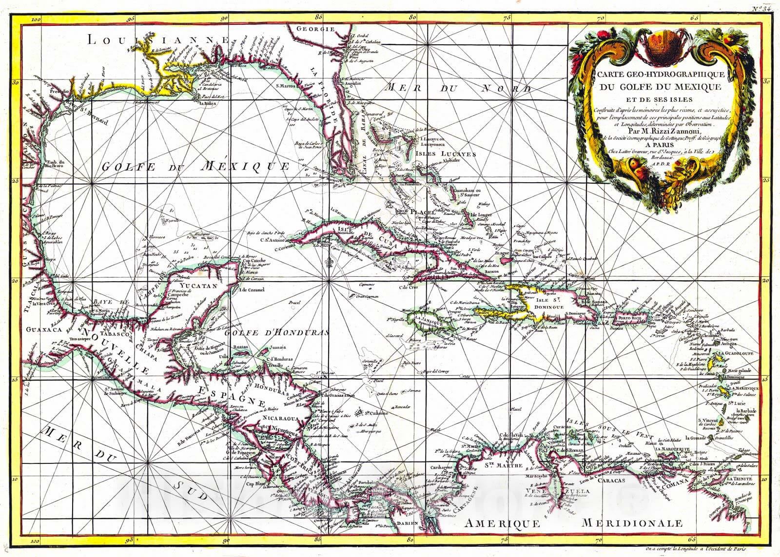 Historic Map : 1762 Carte Geo-hydrographique du Golfe de Mexique : Vintage Wall Art