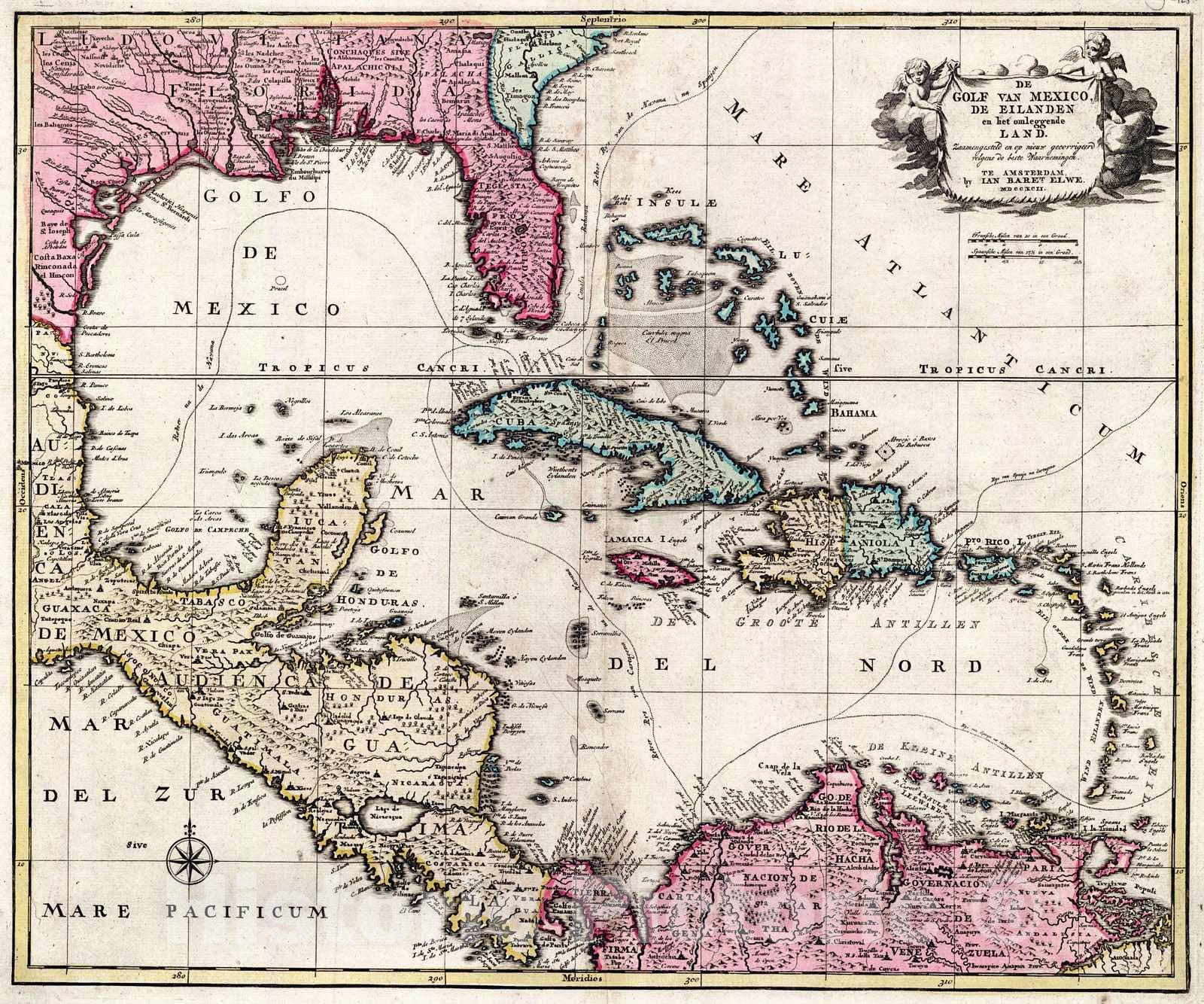 Vintage Map | 1792 De Golf van Mexico de Eilanden en het omleggende Land | Elwe, Jan Barend