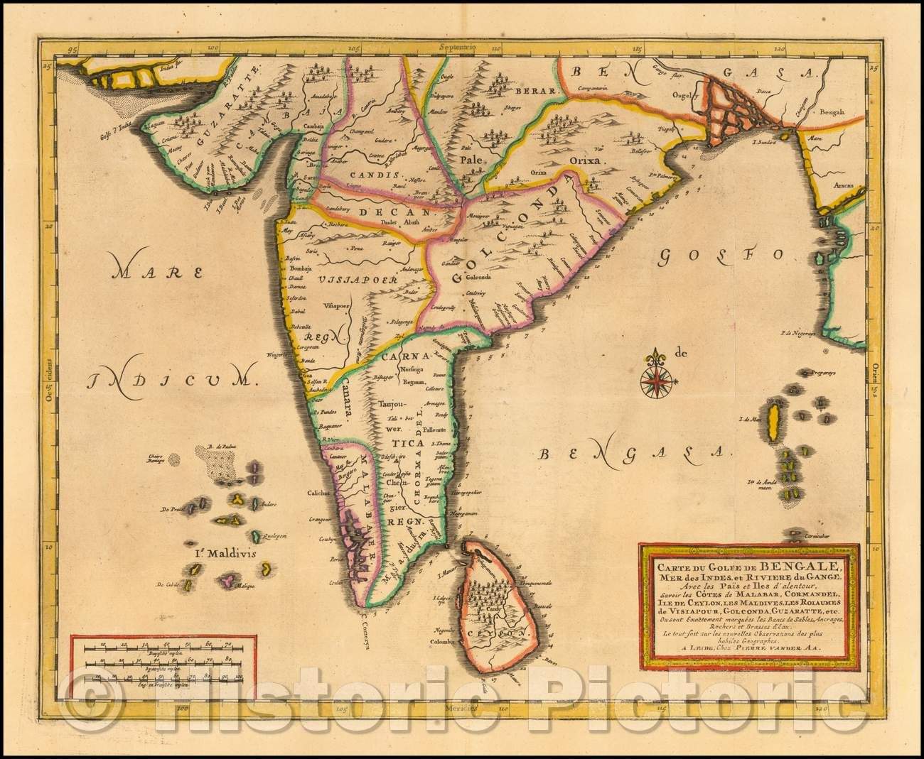 • .Historic Map - Carte du Golfe de Bengale, Mer de Indes, et Riviere du Gange, Avec les Pais et Iles d'alentour, Savoir les Cotes de Malabar, 1720 v1