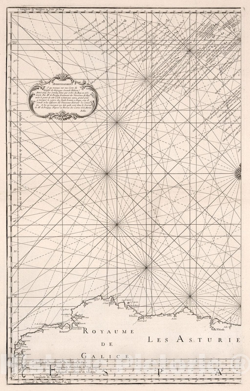 Historic Map : Carte du Golfe de Gascogne ... Costes de France et D'Espagne (western sheet)., 1773, Vintage Wall Art