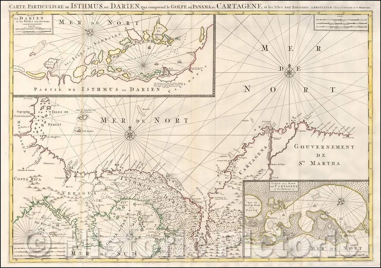 Historic Map - Carte Particuliere de Isthmus ou Darien qui Comprend le Golfe de Panama Cartagena, et les Isles aux Environs, 1720, Johannes Covens - Vintage Wall Art