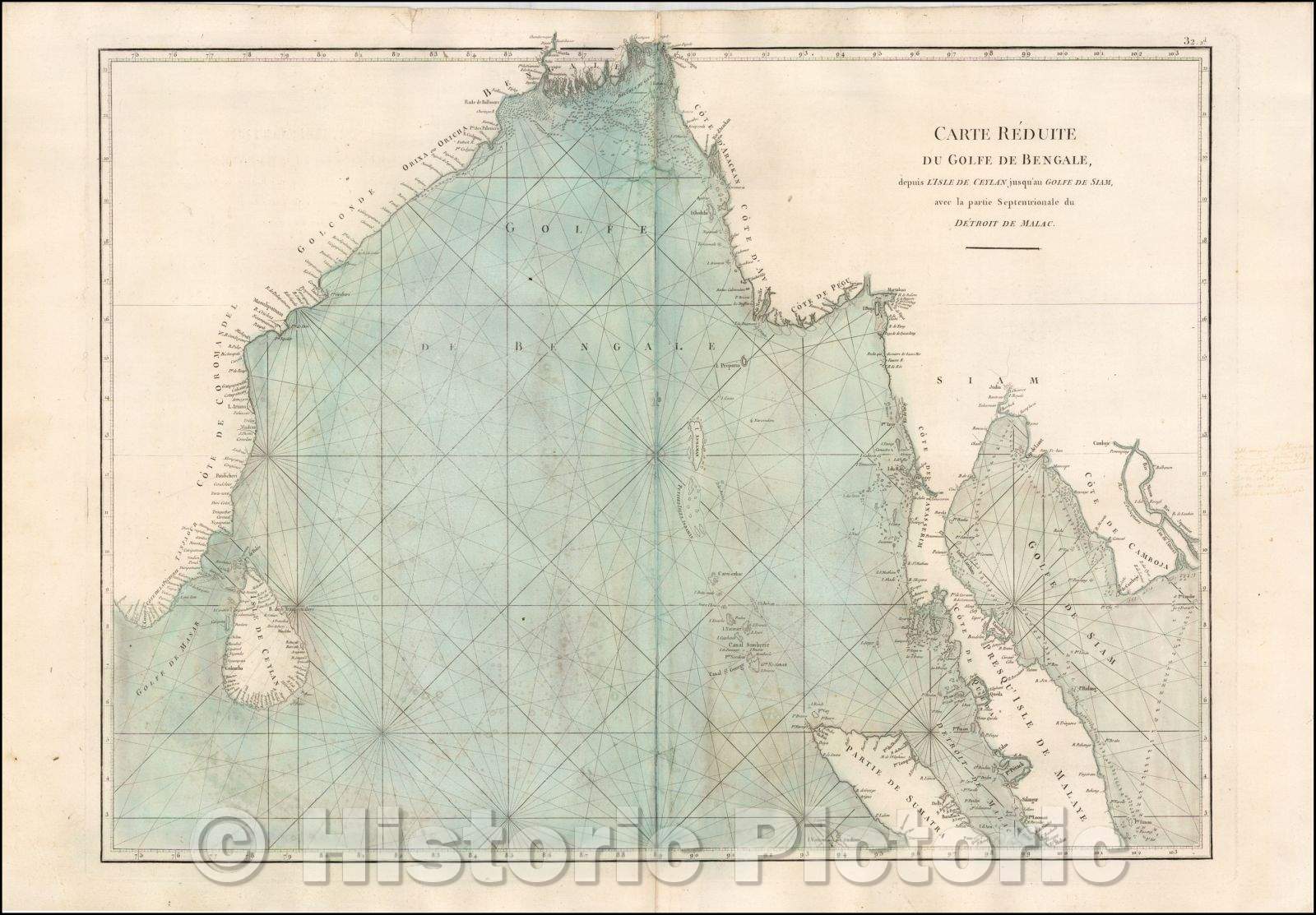 Historic Map - Carte Reduite du Golfe de Bengale, depuis L'Isle de Ceyland jusqu'au Golfe :: Gulf of Bengal, from Ceylon to the Isle to the Gulf of Siam, 1775 - Vintage Wall Art