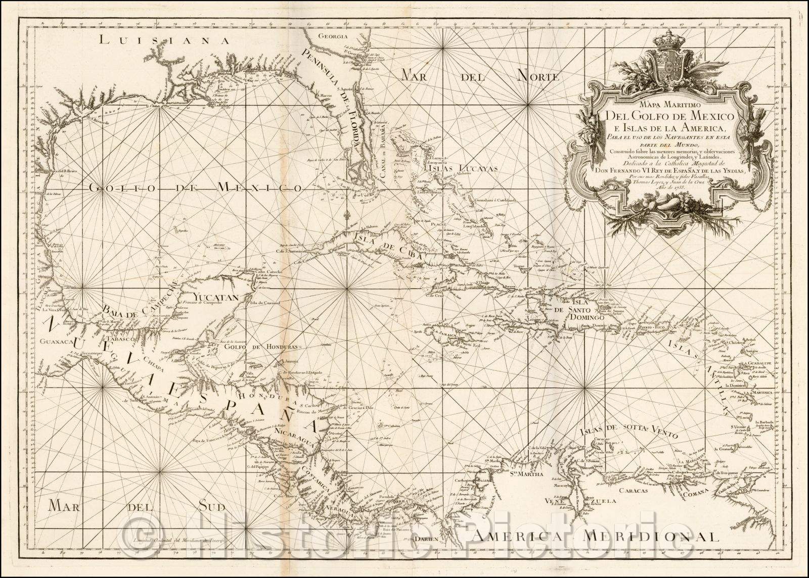 • .Historic Map - Golfo de Mexico e islas de la America,para el uso de los navegantes en esta parte del mundo, construido sobre las mexores memorias, 1755 - Vintage Wall Art