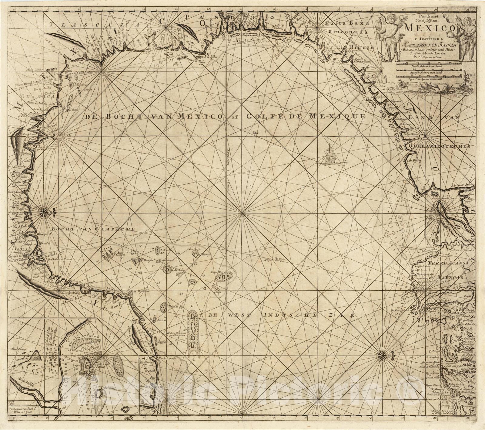 • Historic Map : Gulf Coast - Texas - Florida - Yucatan Pas-Kaart Van de Golff van Mexico, 1734, Gerard Van Keulen, Vintage Wall Art