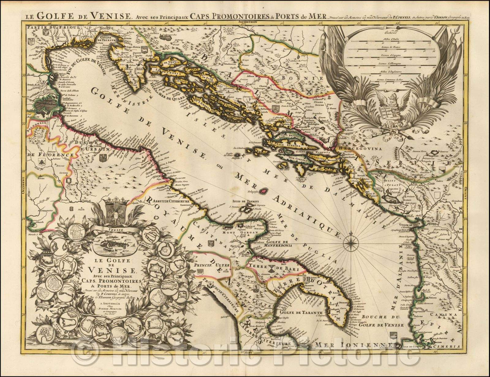 Historic Map - Le Golfe De Venise, Avec ses Principaux Caps, Promontoires, Ports de Mer, 1690, Pieter Mortier - Vintage Wall Art