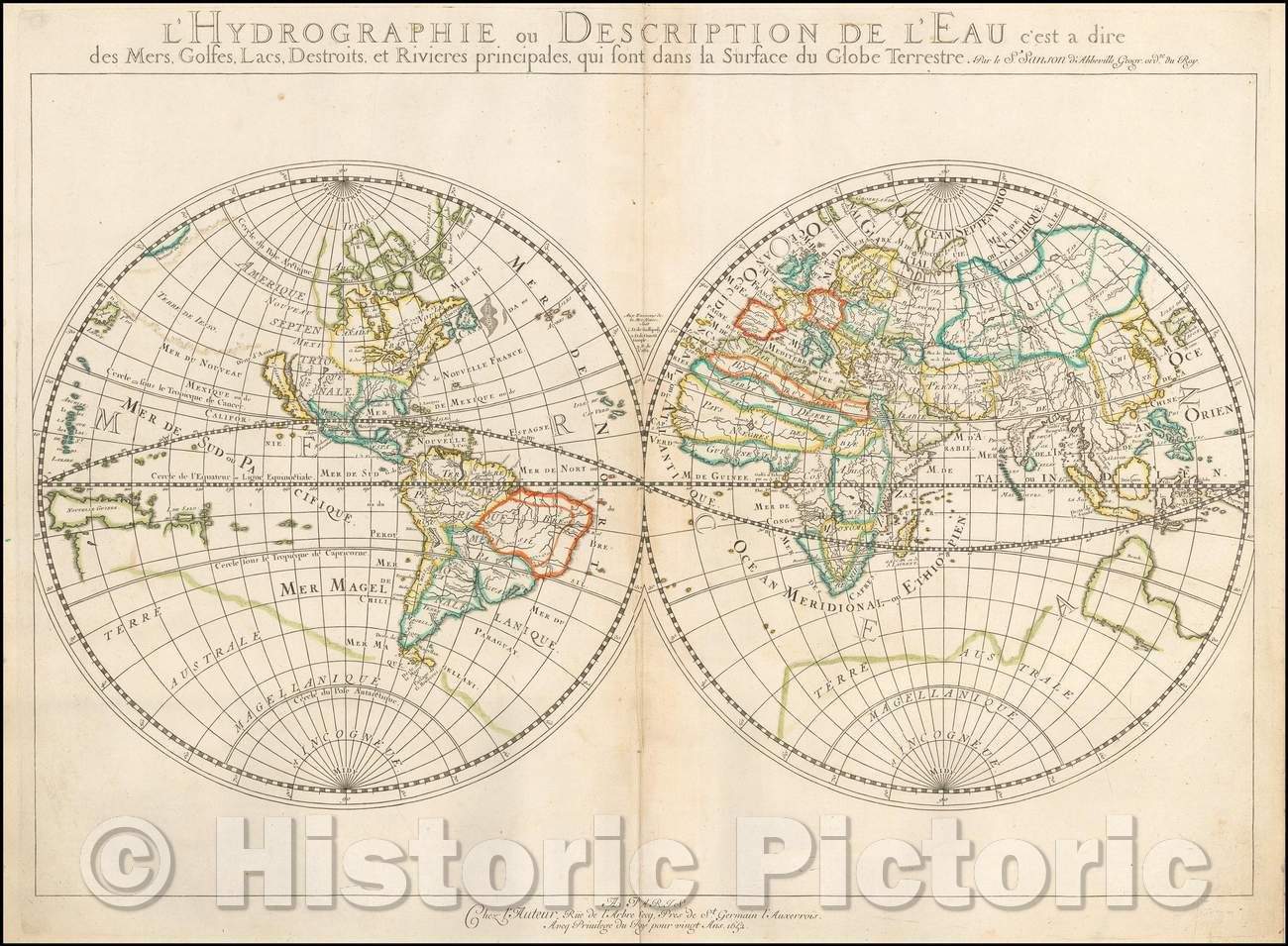 Historic Map - L'Hydrographie ou Descriprion de L'Eau c'est a dire des Mers, Golfes, Lacs, Destroits, et Rivieres principales, qui font dans la Surface, 1652 v2