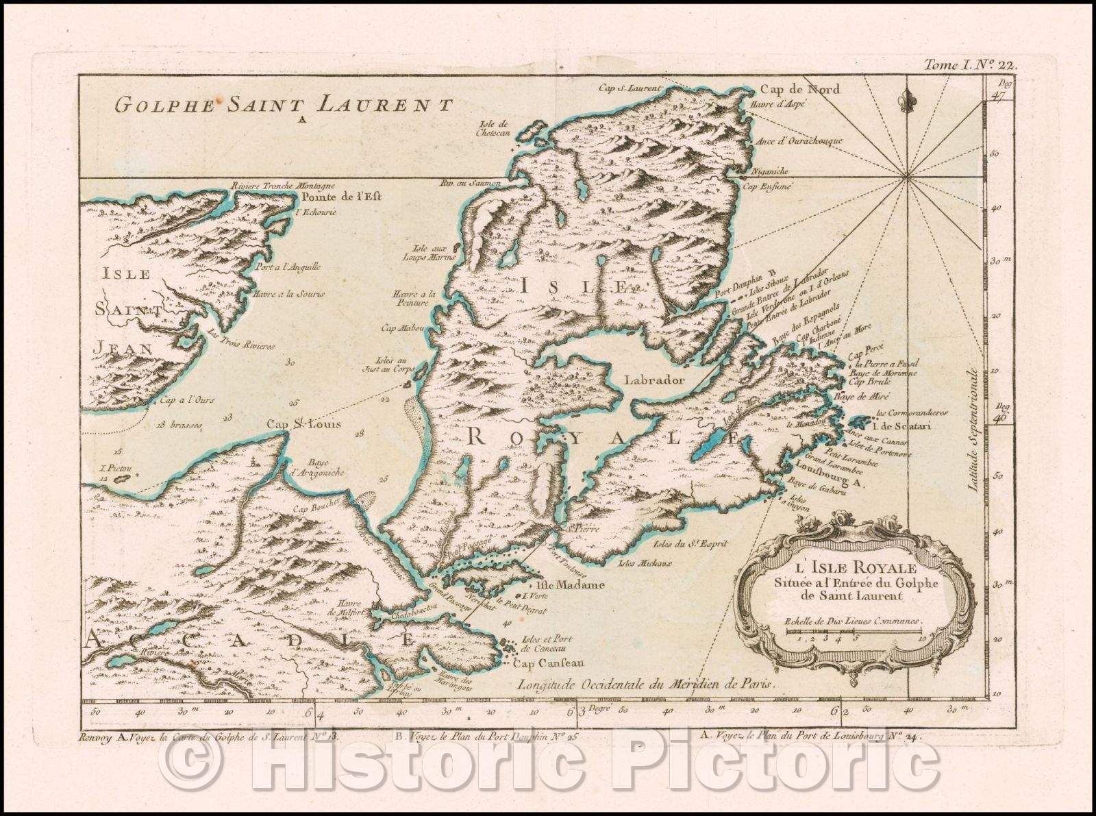 Historic Map - L'l'Isle Royale Situee a l Entree du Golfe de Saint Laurent/The Isle Royale Situated in the Entree Gulf of St. Lawrence, 1764 - Vintage Wall Art