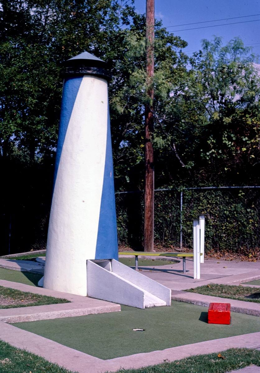 Historic Photo : 1983 Lighthouse hole, Peter Pan mini golf, Barton Springs Road, Austin, Texas | Margolies | Roadside America Collection | Vintage Wall Art :