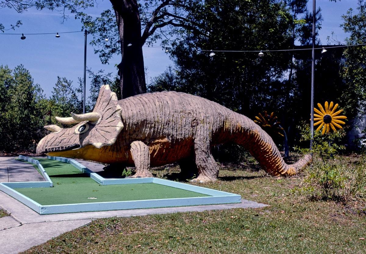 Historic Photo : 1988 Dinosaur hole-entire, Wacky Golf, North Myrtle Beach, South Carolina | Margolies | Roadside America Collection | Vintage Wall Art :
