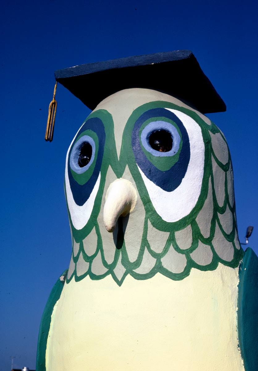 • Historic Photo : 1986 Owl detail, Sir Goony Golf, Chattanooga, Tennessee | Margolies | Roadside America Collection | Vintage Wall Art :