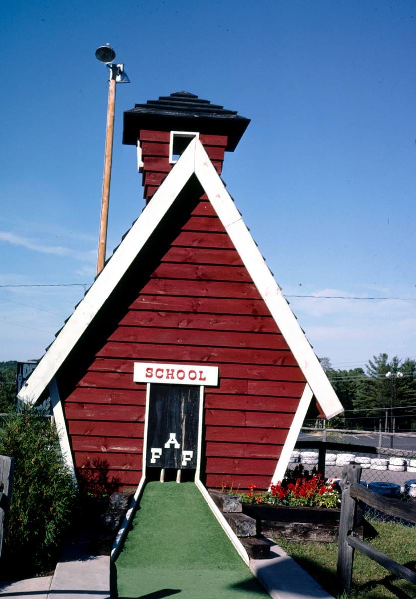 Historic Photo : 1988 Schoolhouse, Old Kilbourn mini golf, Route 12, Wisconsin Dells, Wisconsin | Margolies | Roadside America Collection | Vintage Wall Art :