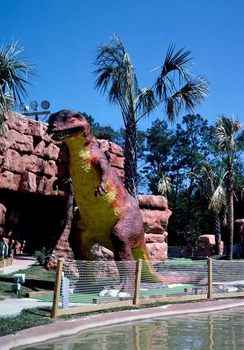 Historic Photo : 1988 Dinosaur overall vertical, Rainbow Falls Golf, Myrtle Beach, South Carolina | Margolies | Roadside America Collection | Vintage Wall Art :