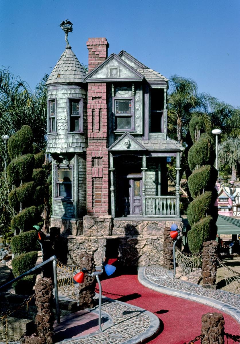 • .Historic Photo : 1985 Haunted house, Castle Park Golf, Polk Street, Riverside, California | Margolies | Roadside America Collection | Vintage Wall Art :