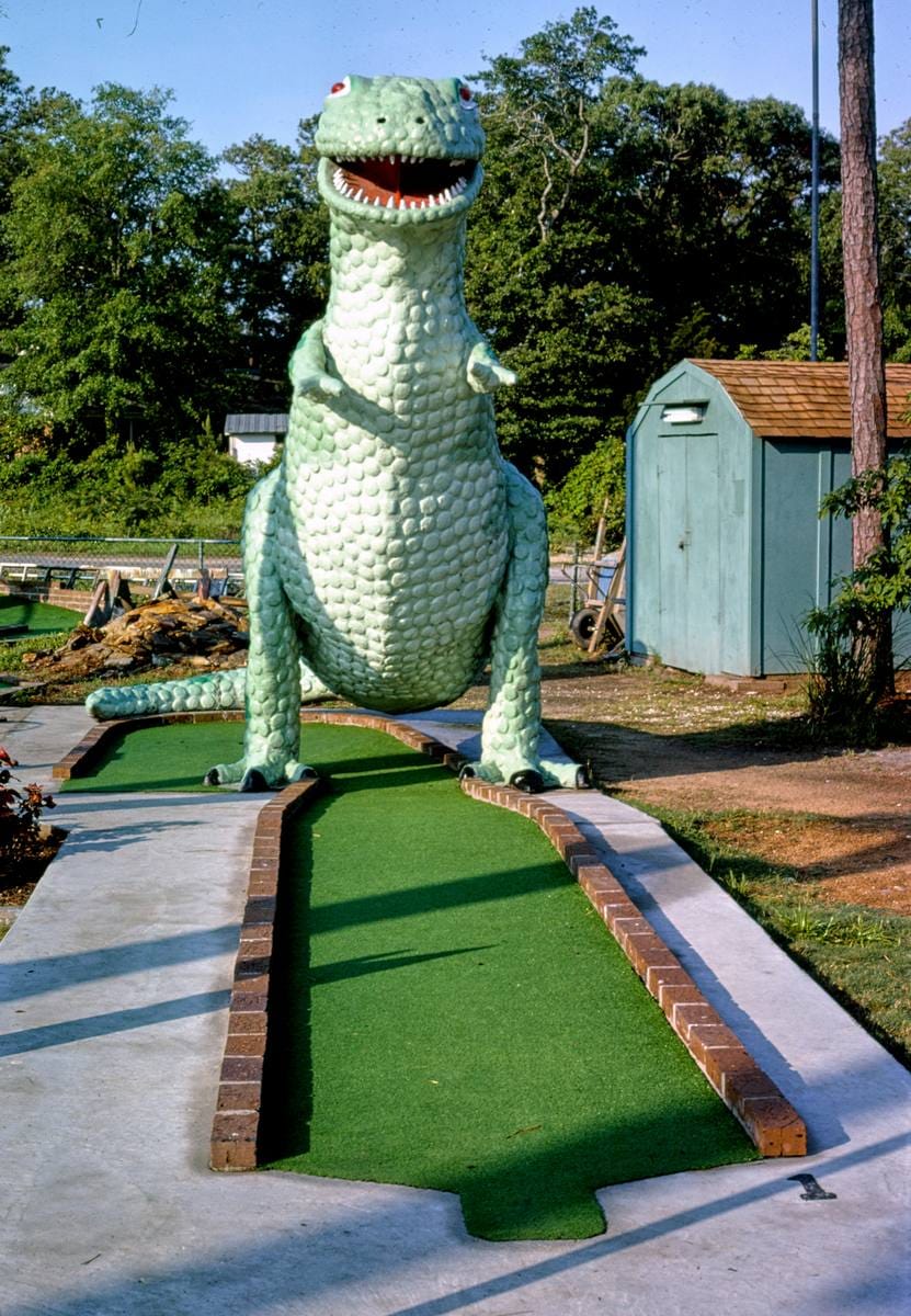 • .Historic Photo : 1979 Green dinosaur hole, Wacky Golf, Myrtle Beach, South Carolina | Margolies | Roadside America Collection | Vintage Wall Art :
