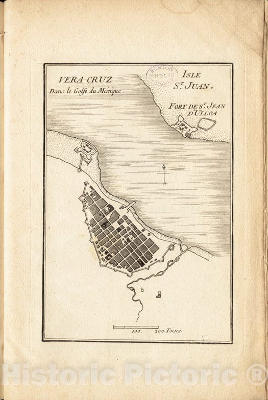 Historical Map, 1755 Vera-Cruz Dans le Golfe du MeIxique [and] Isle St. Juan, Fort de St. Jean d'Ulloa, Vintage Wall Art