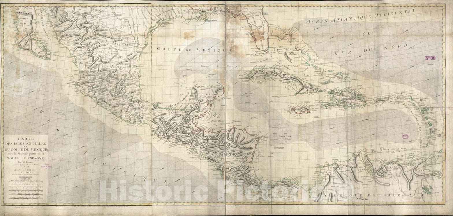 Historical Map, 1782 Carte des Isles Antilles et du Golfe du Mexique : avec la majeure Partie de la Nouvelle Espagne, Vintage Wall Art