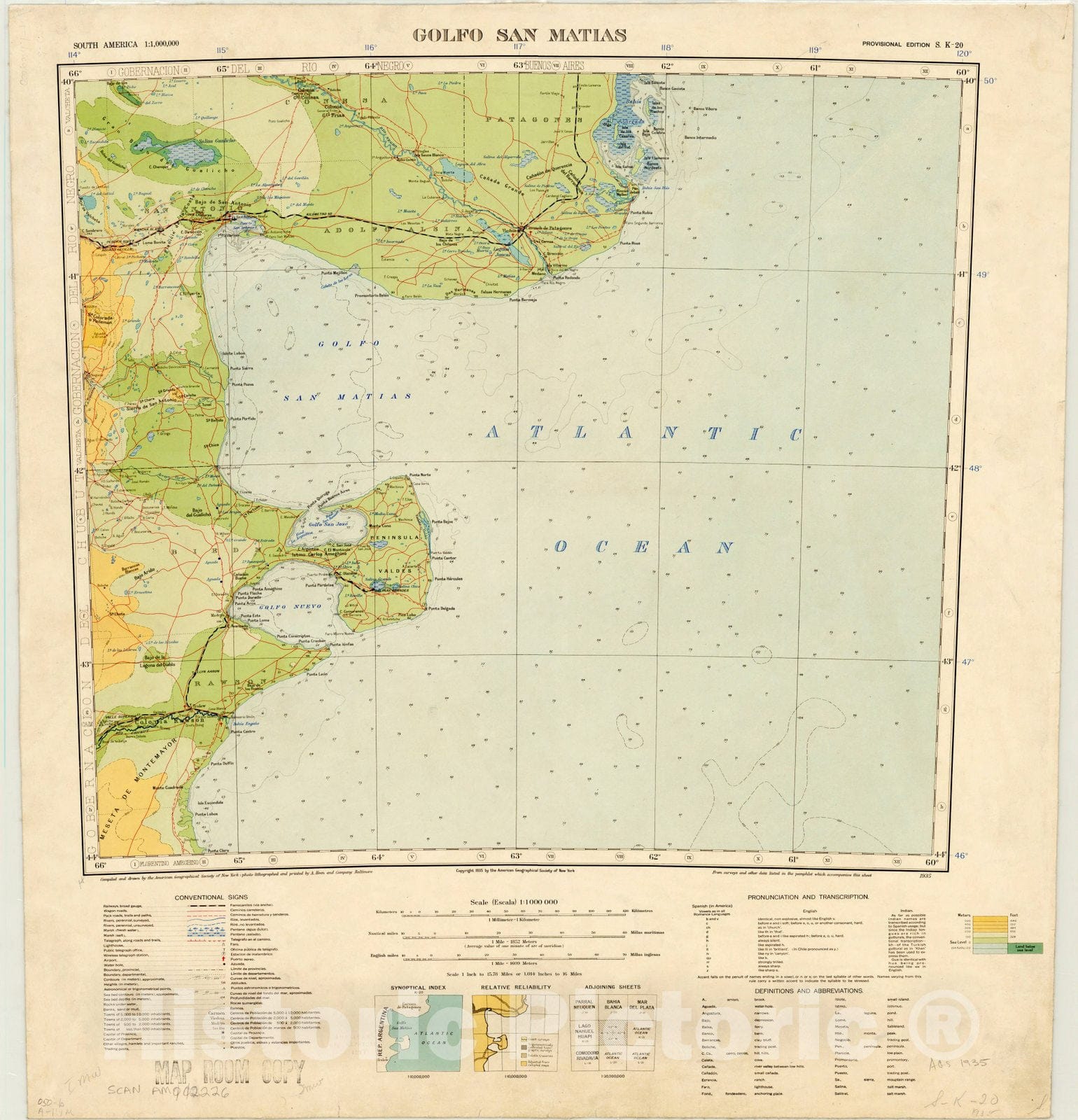 Map : Golfo San Matias 1935, South America 1:1,000,000 Golfo San Matias S.K. 20 , Antique Vintage Reproduction