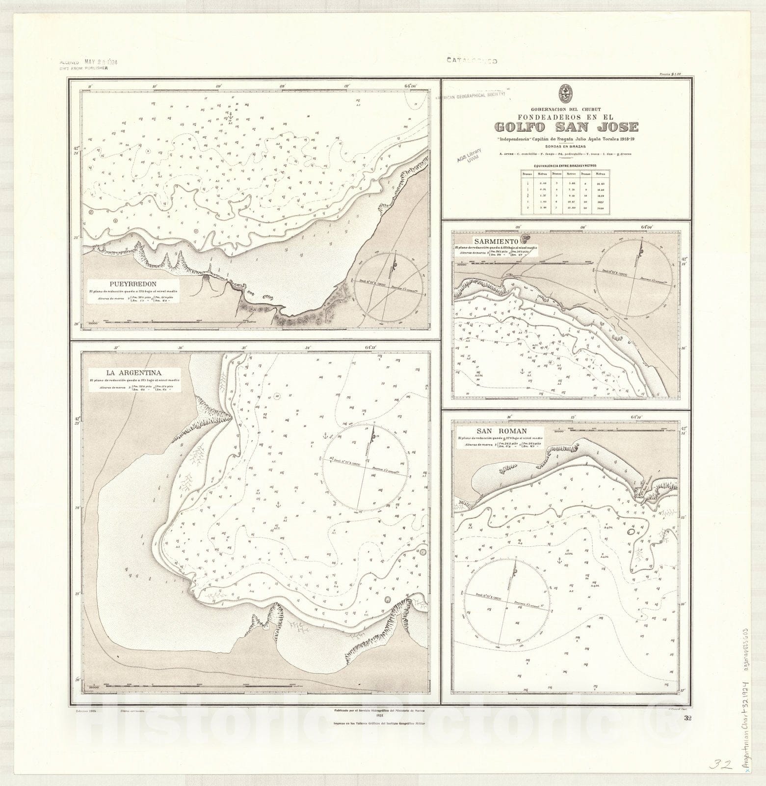 Map : San Jose Bay, Argentina 1924, Gobernacion del Chubut, Fondeaderos en el Golfo San Jose , Antique Vintage Reproduction