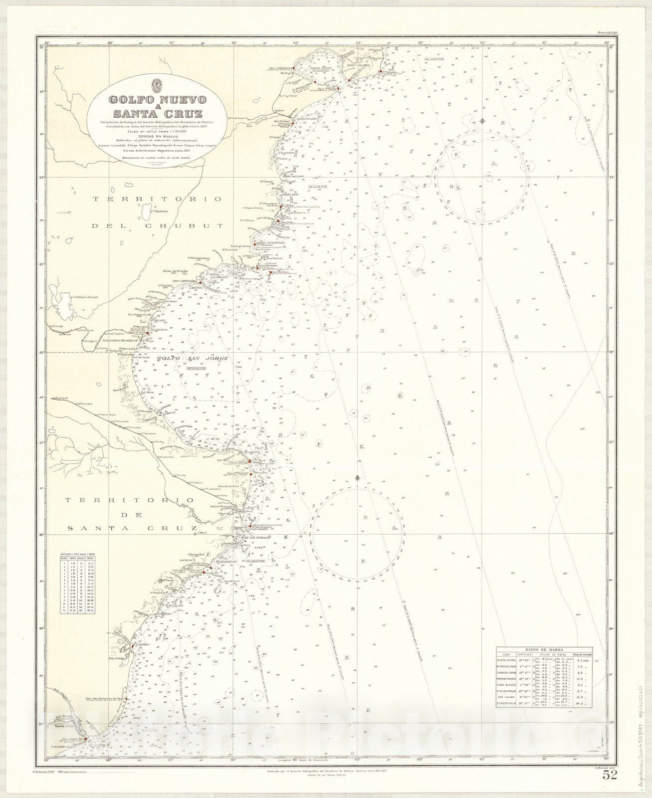 • .Map : Santa Cruz, Argentina 1937, Golfo Nuevo a Santa Cruz , Antique Vintage Reproduction