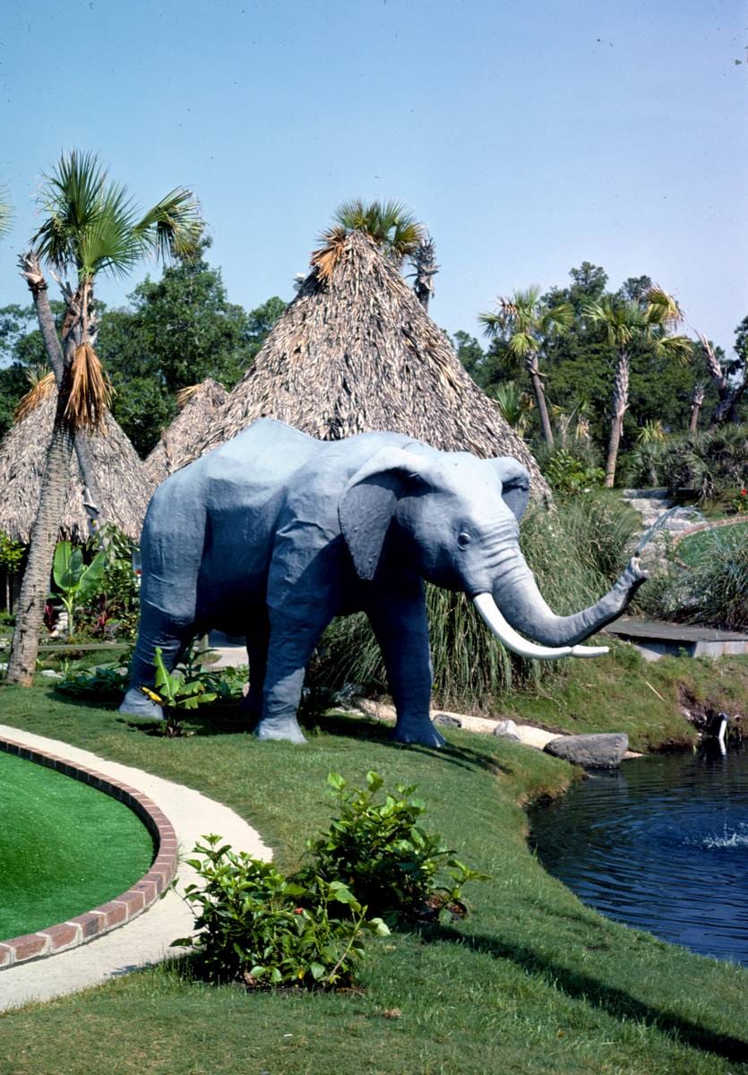 Historic Photo : 1979 Elephant (profile), Jungle Golf, Myrtle Beach, South Carolina | Margolies | Roadside America Collection | Vintage Wall Art :