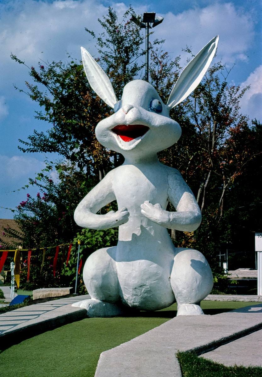 Historic Photo : 1983 White Rabbit hole, Peter Pan mini golf, Barton Springs Road, Austin, Texas | Margolies | Roadside America Collection | Vintage Wall Art :