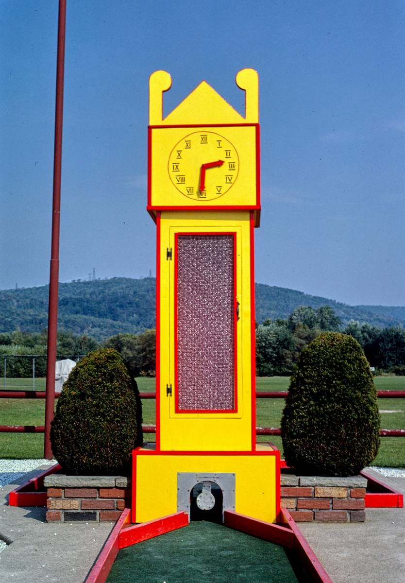 Historic Photo : 1984 Yellow Clock, Rich's miniature golf, Wyoming, Pennsylvania | Margolies | Roadside America Collection | Vintage Wall Art :