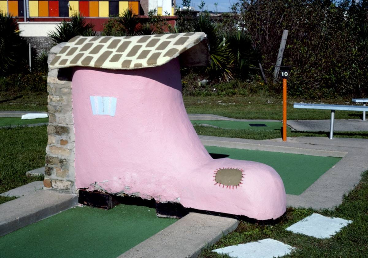 Historic Photo : 1986 Shoe angle 1, Stewart Beach mini golf seawall, Galveston, Texas | Margolies | Roadside America Collection | Vintage Wall Art :