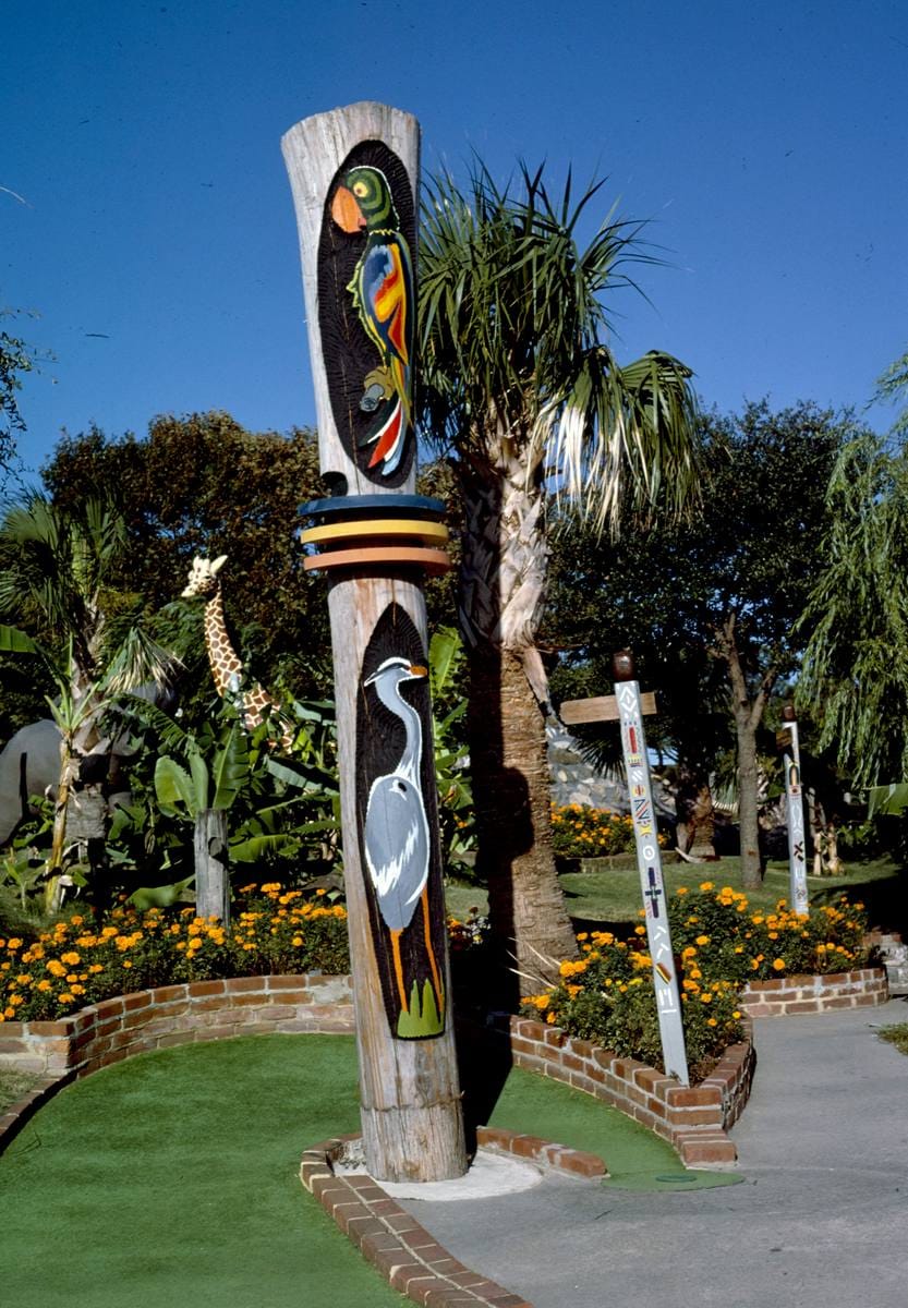 Historic Photo : 1985 Totem and giraffe, Jungle Golf, Virginia Beach, Virginia | Margolies | Roadside America Collection | Vintage Wall Art :