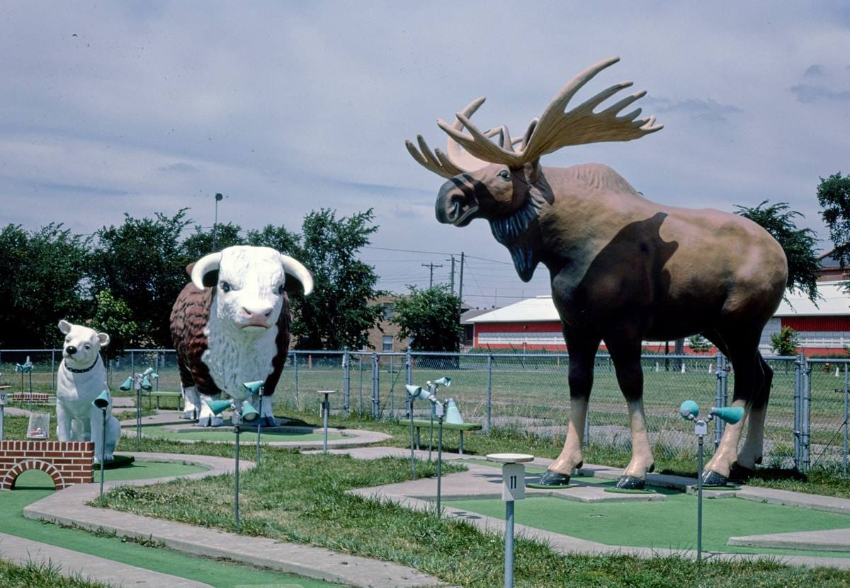 Historic Photo : 1984 Nipper, bull and moose, Fairway Golf, 1700 Como Avenue, St. Paul, Minnesota | Margolies | Roadside America Collection | Vintage Wall Art :