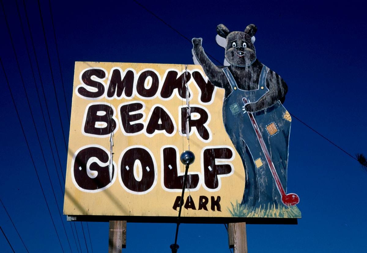 Historic Photo : 1984 Sign, Smoky Bear Golf Park, Route 441, Pigeon Forge, Tennessee | Margolies | Roadside America Collection | Vintage Wall Art :