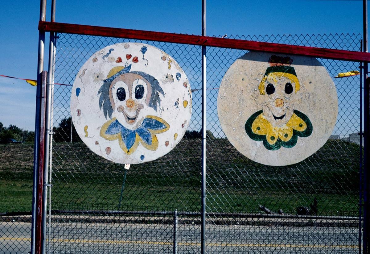 Historic Photo : 1988 Two clown discs, Espey And Daly's Hi-Land mini golf, 7011 Chippewa, Saint Louis, Missouri | Photo by: John Margolies |