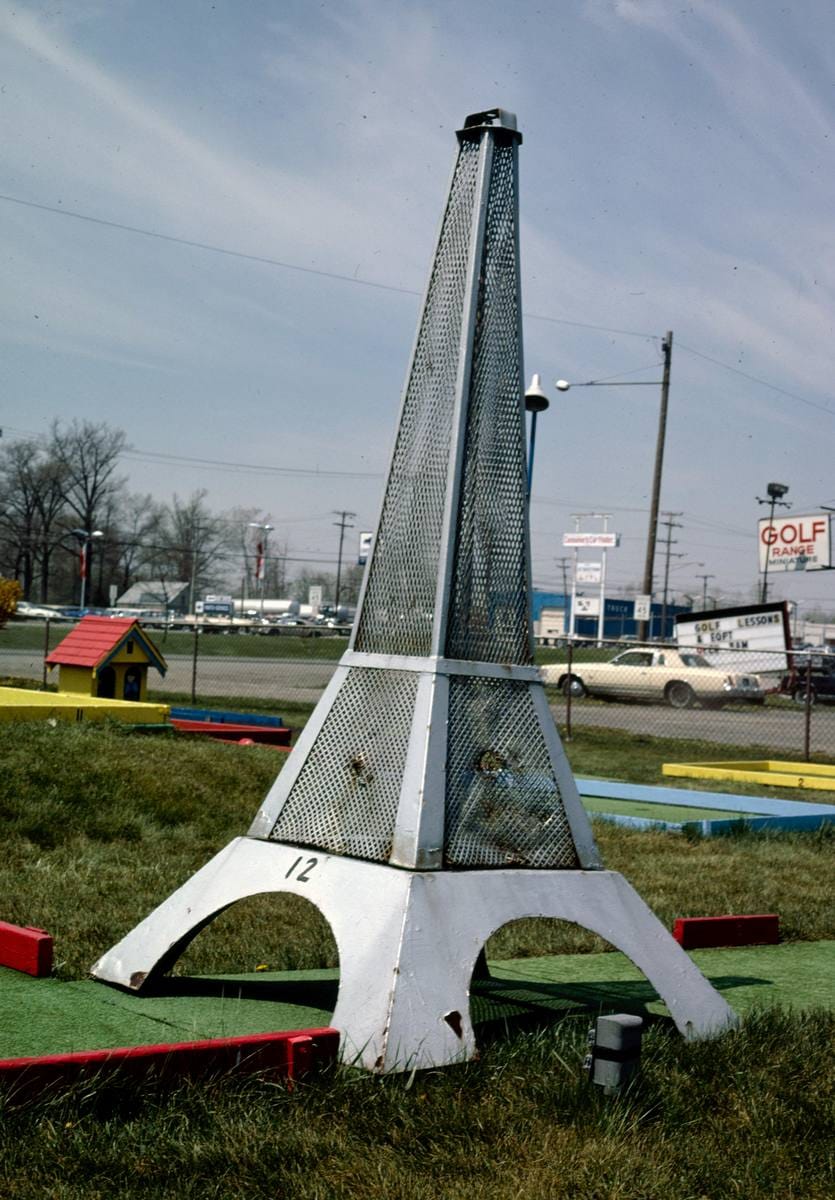 Historic Photo : 1986 Eiffel Tower hole, Vinson's miniature golf, Taylor, Michigan | Margolies | Roadside America Collection | Vintage Wall Art :