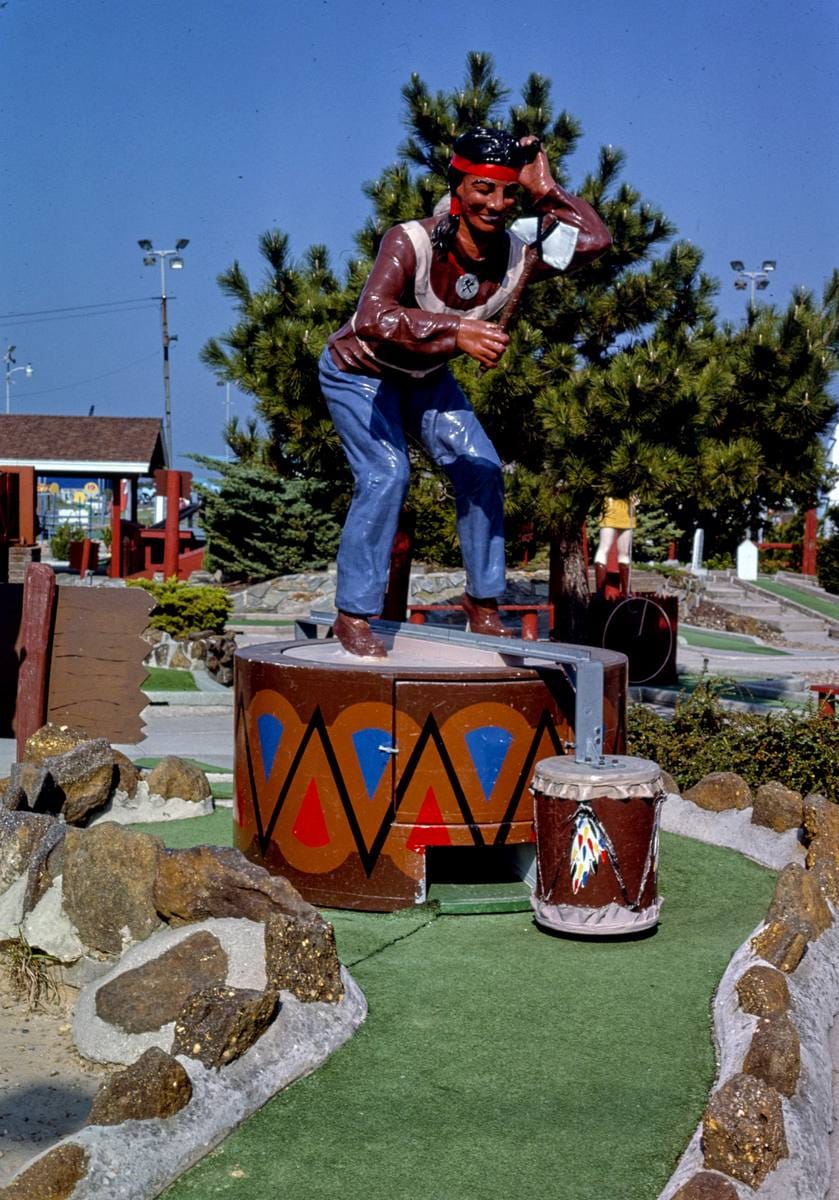 Historic Photo : 1985 Old Pro Golf, cowboys and Indians course. Indian and drum hole. Ocean City, Maryland | Margolies | Roadside America Collection | Vintage Wall Art :