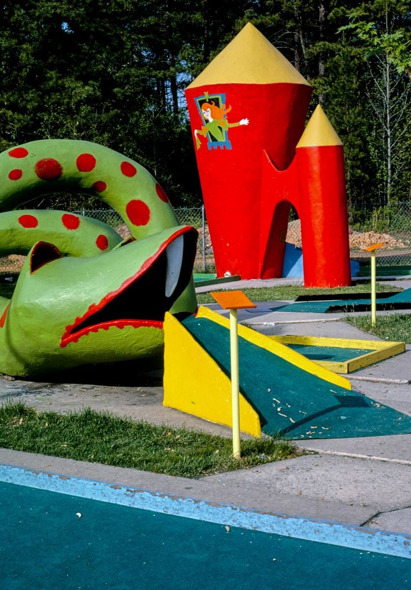 • .Historic Photo : 1982 Snake and tower, Sir Goony Golf, Independence Boulevard, Charlotte, North Carolina | Margolies | Roadside America Collection | Vintage Wall Art :