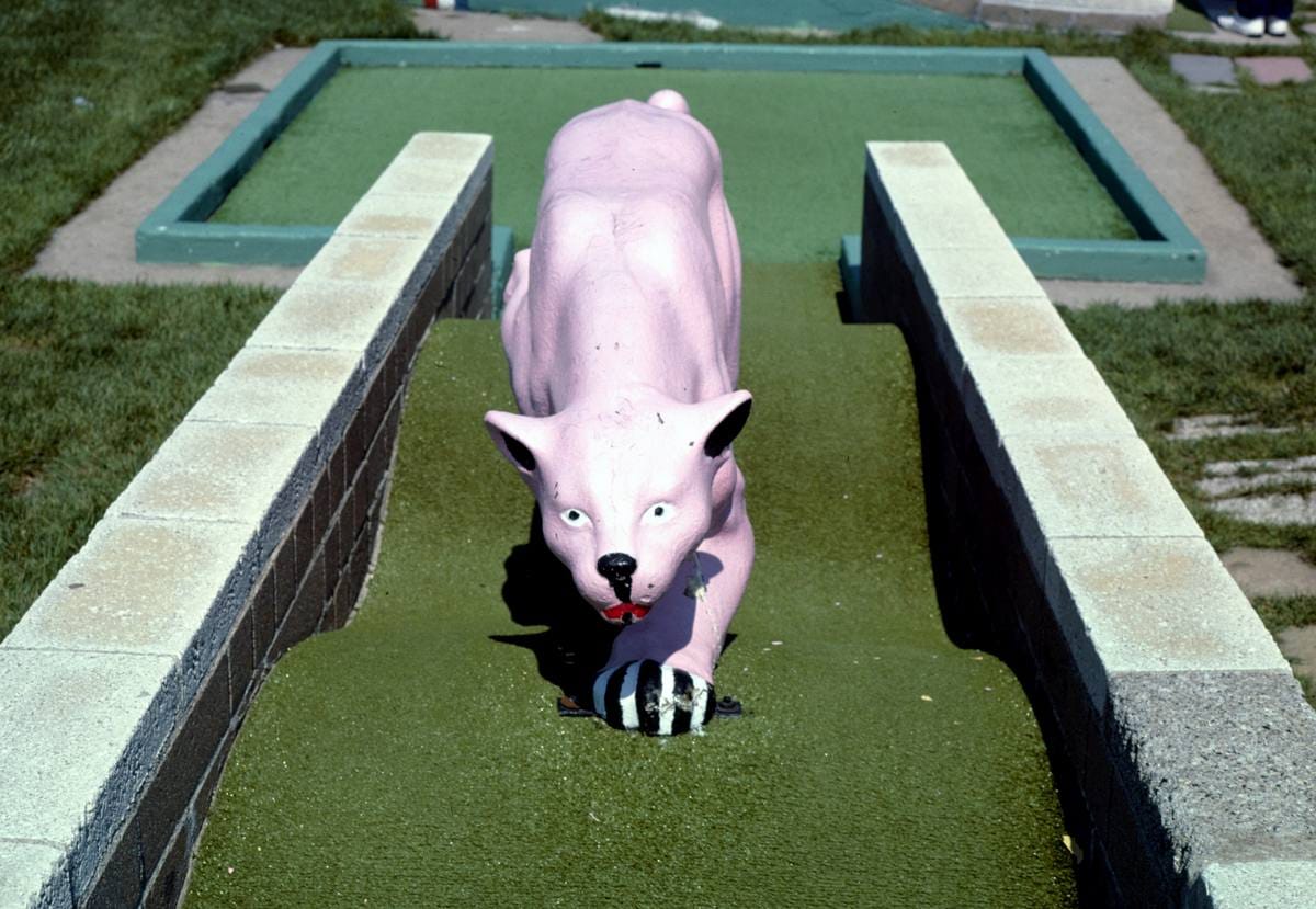 Historic Photo : 1986 Pink Panther (straight on), Jawor's Fun Golf, Roseville, Michigan | Margolies | Roadside America Collection | Vintage Wall Art :