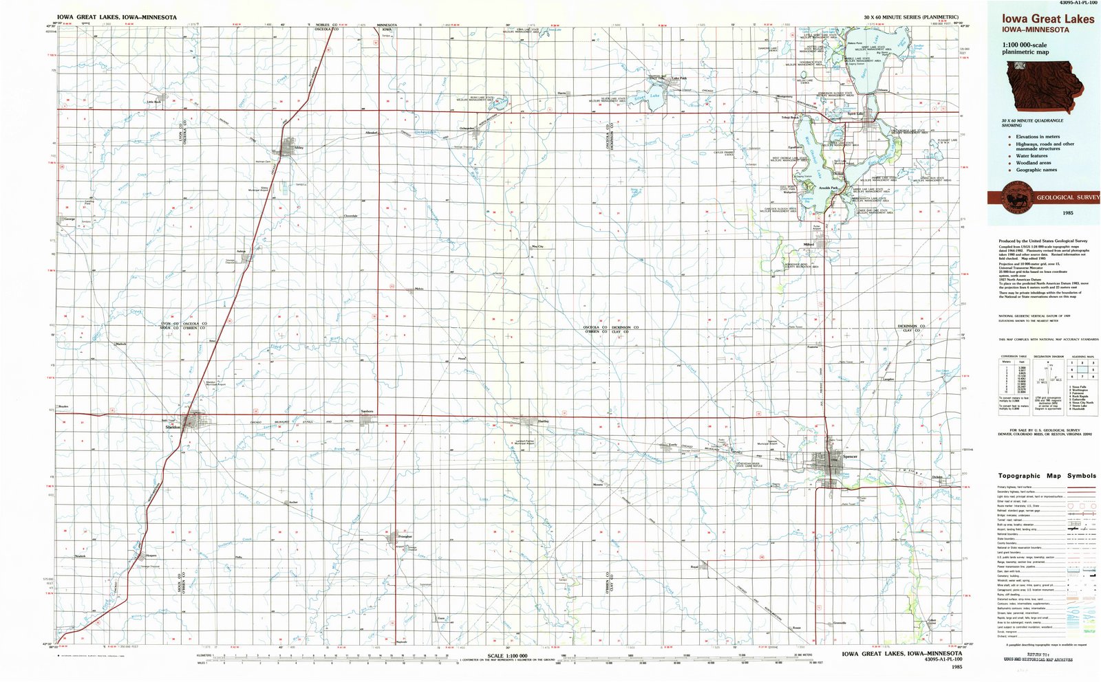 1985 Iowa Great Lakes, IA - Iowa - USGS Topographic Map