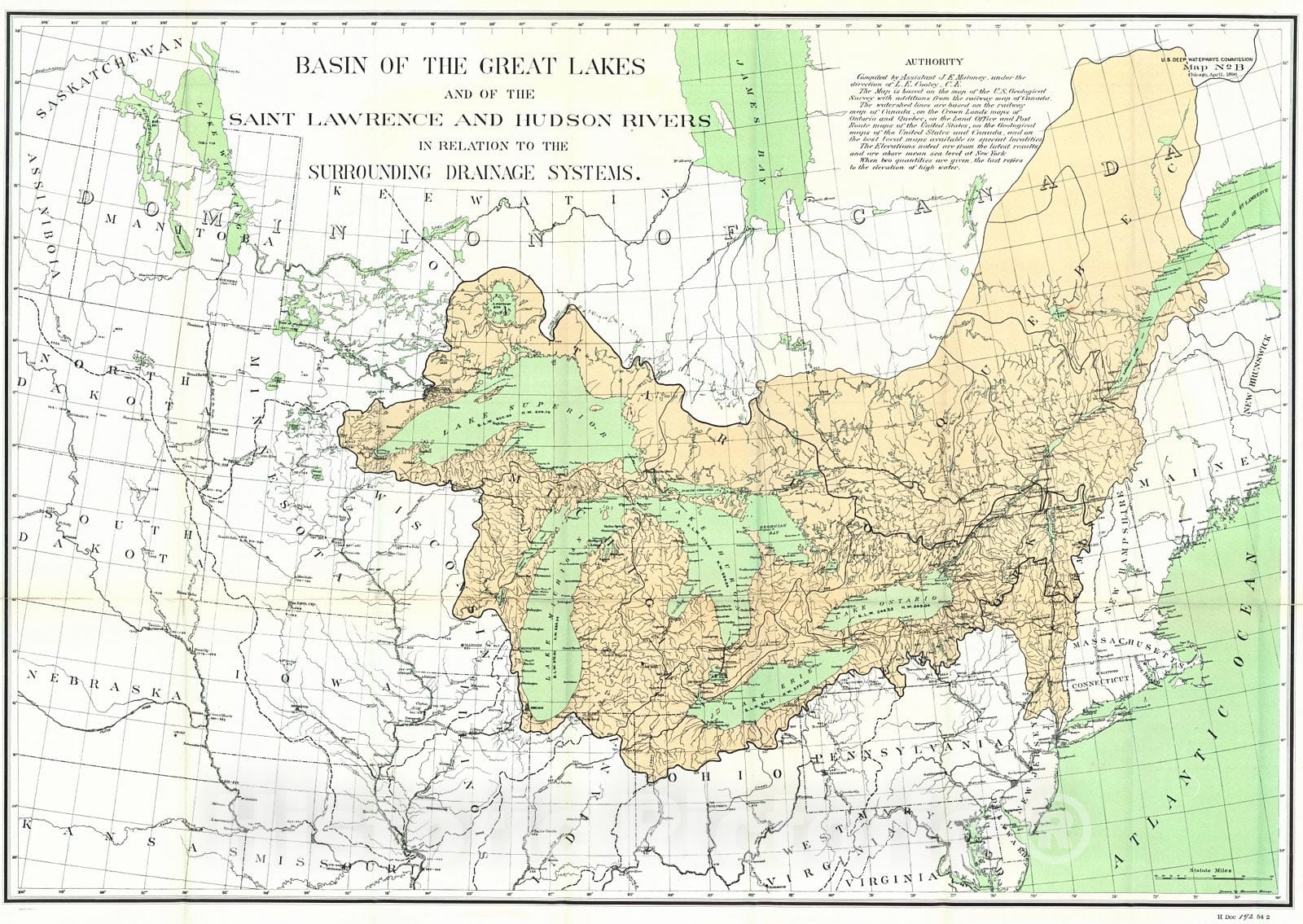 Historic Map : 1896 Basin of the Great Lakes and of the Saint Lawrence and Hudson Rivers in Relation to the Surrounding Drainage Systems : Vintage Wall Art
