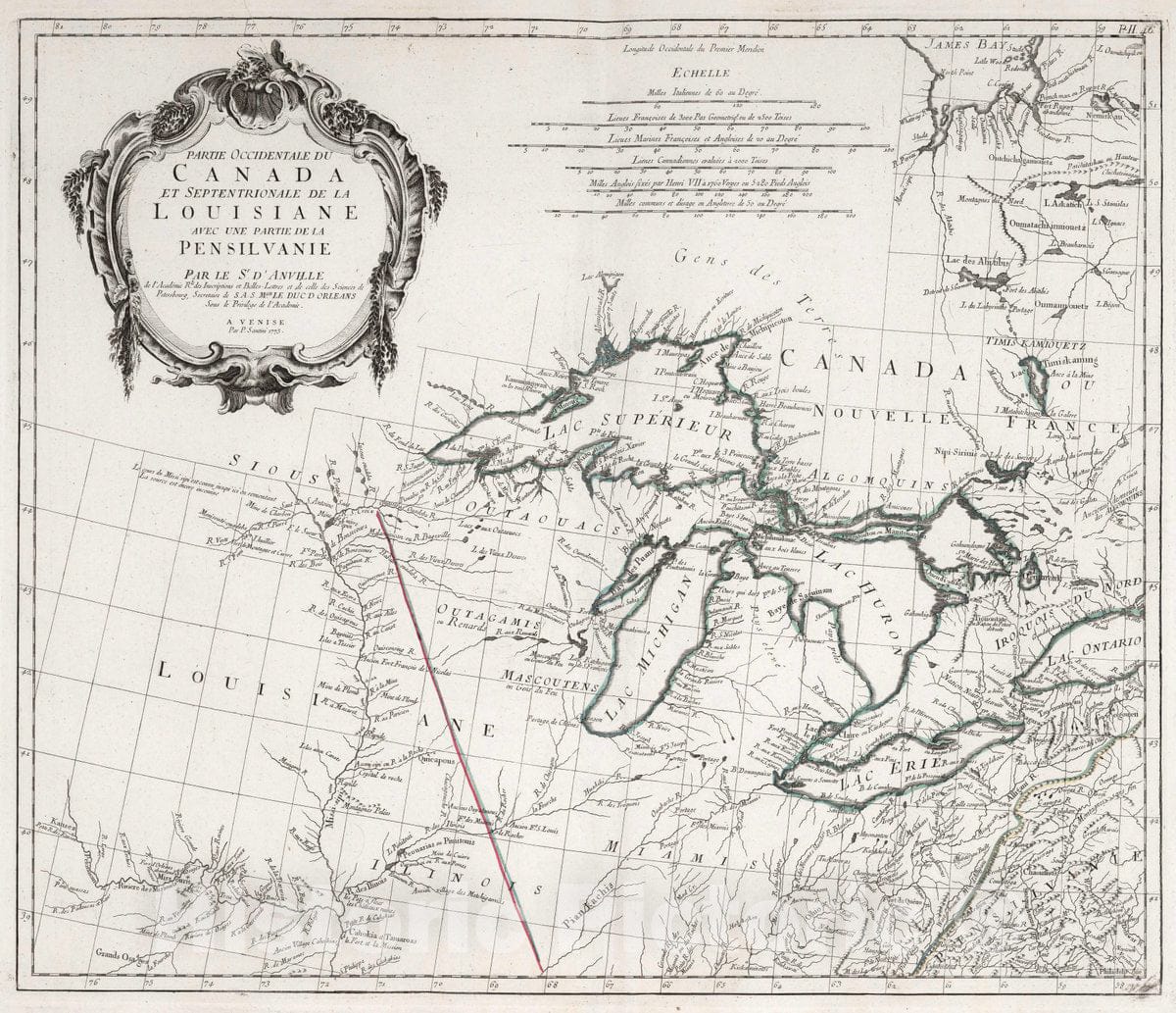 Historic Map : Canada, Great Lakes, North America 46. Partie Occidentale du Canada et Septentrionale de la Louisiane, 1775 Atlas , Vintage Wall Art