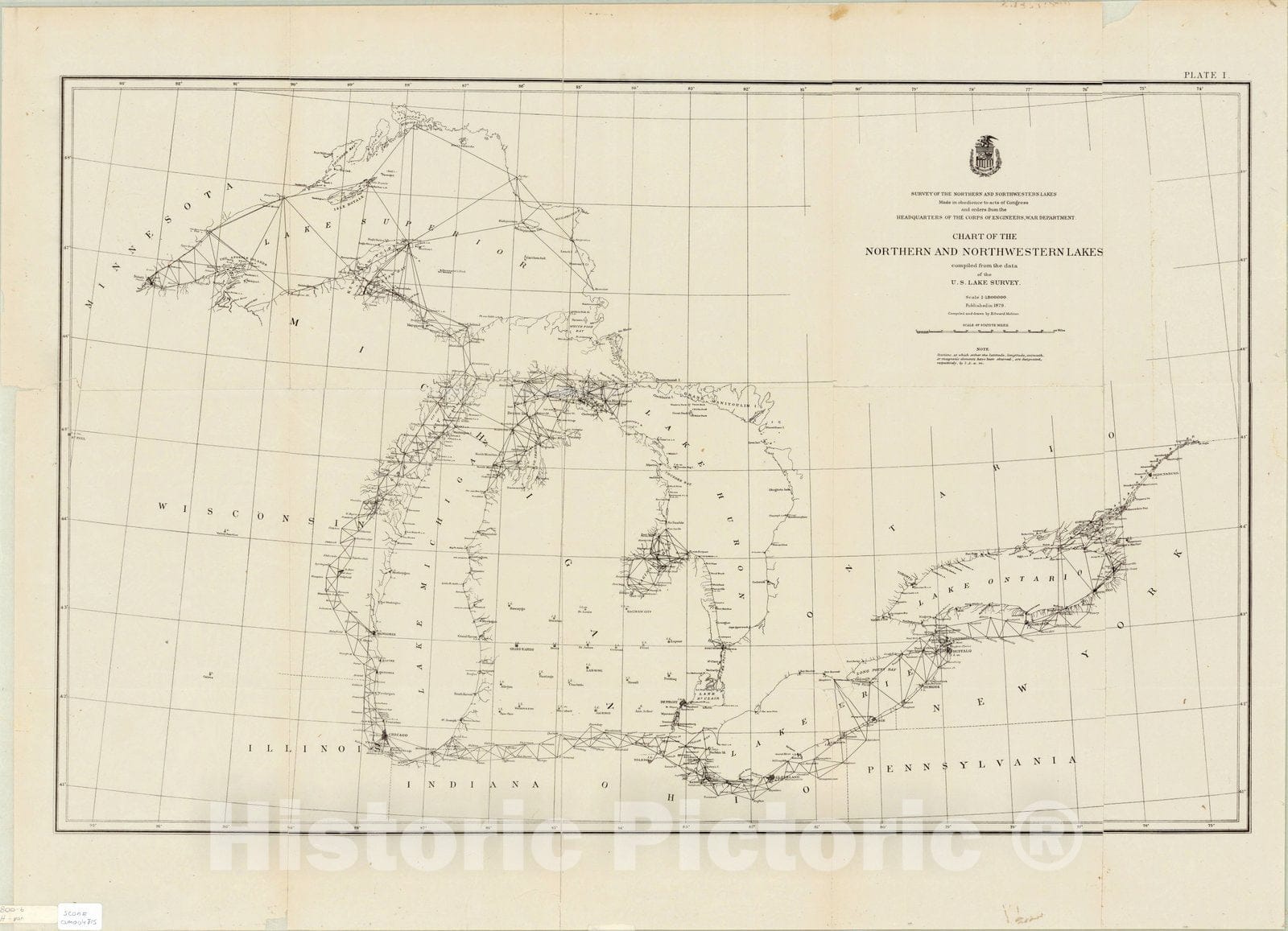 Map : Great Lakes 1879, Chart of the northern and northwestern lakes , Antique Vintage Reproduction