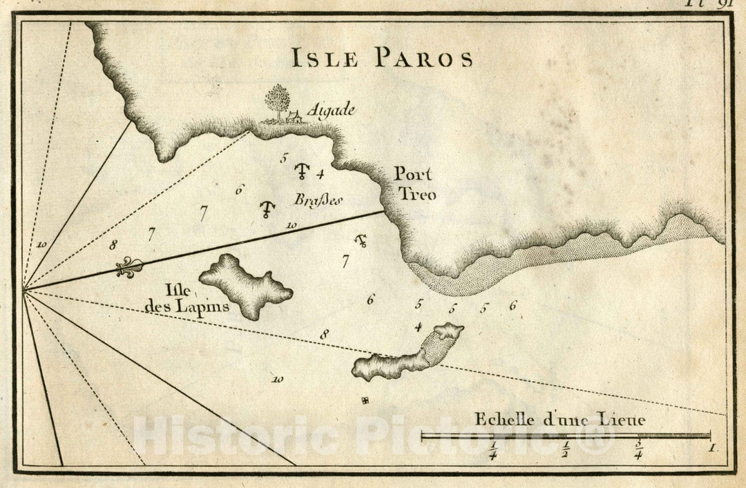 Historic Map : Chrisi Akti (Paros Island, Greece), Chart Map, Pl. 91. Chrisi Akti, Paros Island, Greece. 1764 , Vintage Wall Art
