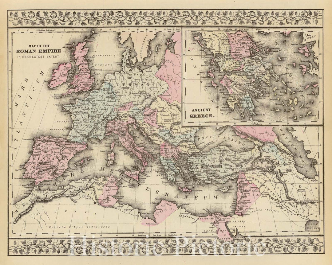 Historic Map : 1880 Roman Empire, Greece. - Vintage Wall Art