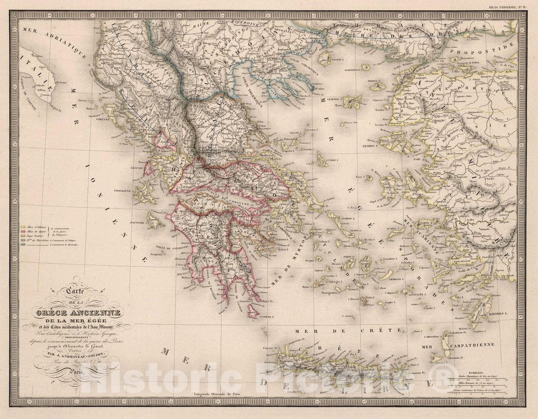 Historic Map : Greece, Crete Carte de la Greces Ancienne, 1850 Atlas , Vintage Wall Art