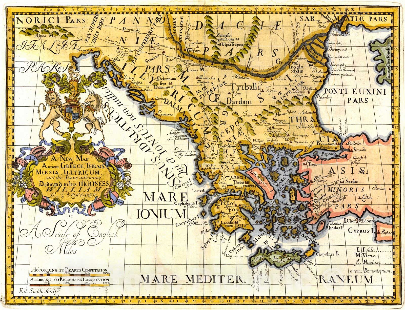 Historic Map : 1718 A New Map of Antient Greece, Thrace, Moesia, Illyricum and the isles adjoyning. : Vintage Wall Art