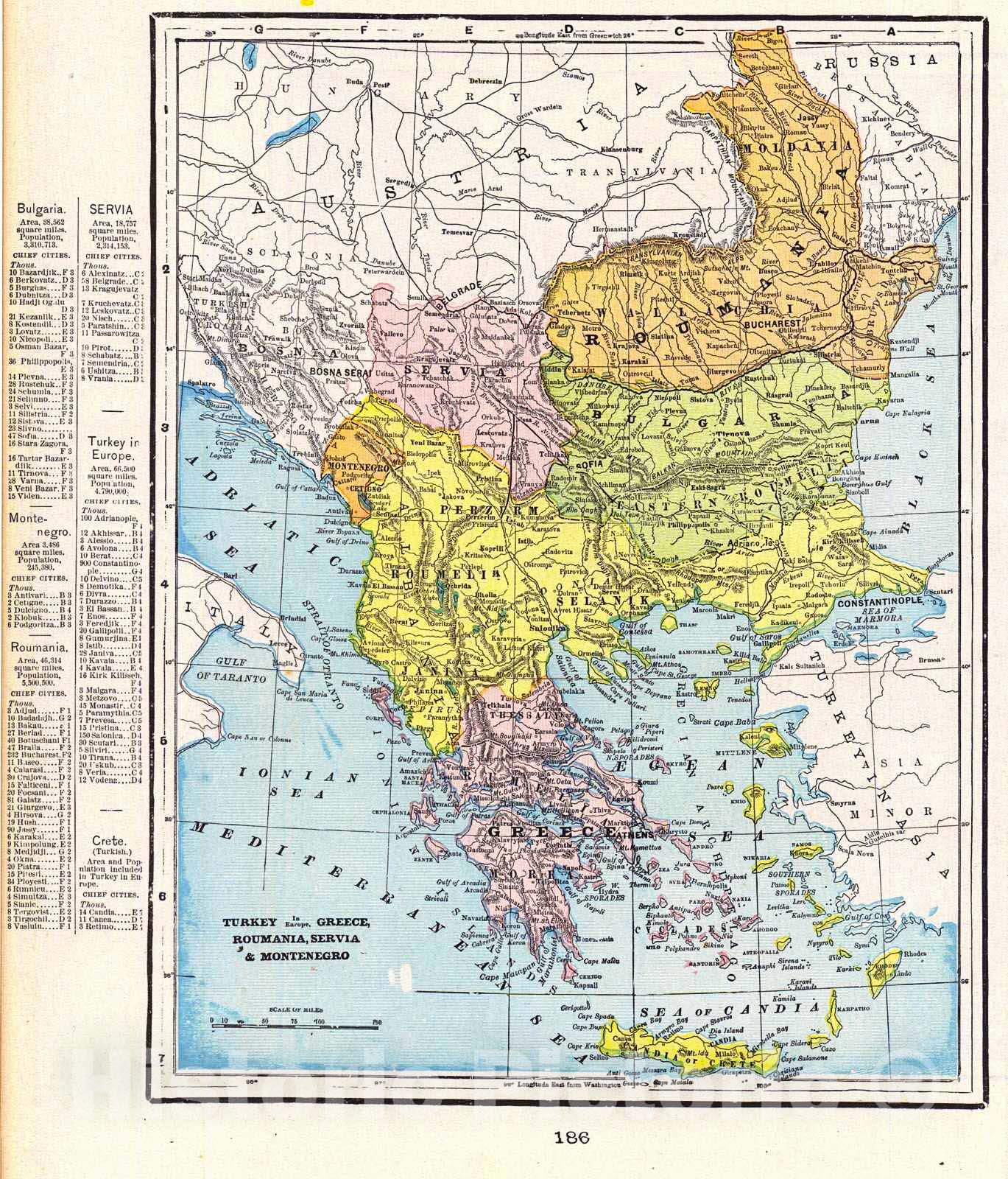 Historic Map : 1898 Turkey in Europe, Greece, Roumania, Servia, & Montenegro : Vintage Wall Art