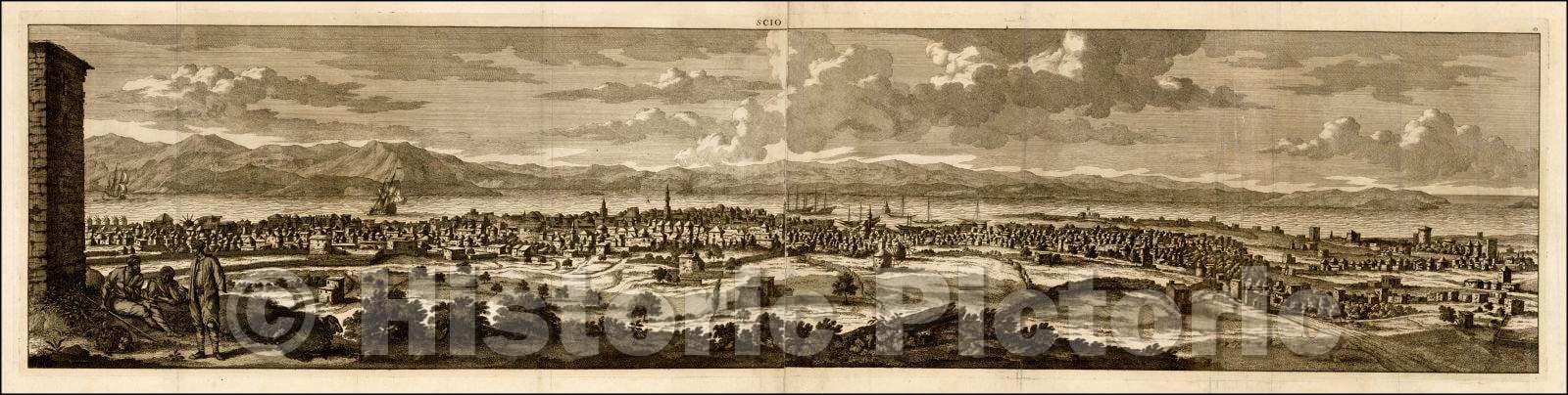 • .Historic Map - [Chios, Greece] Scio/View of Chiosl from De Bruyn's Reizen van Cornelis de Bruyn, 1698, Cornelis De Bruyn - Vintage Wall Art